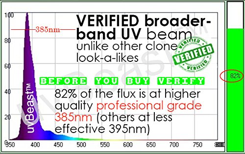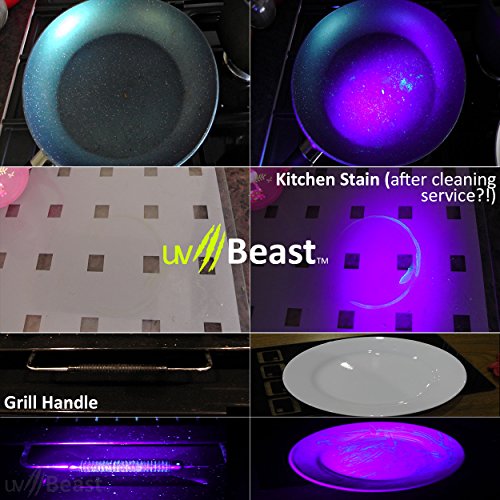 Studio : uvBeast Publisher : uvBeast Binding : Misc. Product Description THE PROBLEM WITH OTHER UV FLASHLIGHTS For most of us, they're just too damn dim! They're impractical. You'll need darkness, be within 2 feet, and literally on top of, your area of interest. You'll mostly be on your hands-n-knees, in the dark! uvBEAST - FLOODLIGHT EFFECT USING ENHANCED UV LED TECHNOLOGY Pumping out a massive 18 watts (100 x 0.18w) of 385-395nm ultraviolet light, it's a beast! With our enhanced UK-engineered higher radiant intensity LEDs (InGaN) you'll have more power than other UV flashlights. Want a flood light effect? With this much power you'll be able to see 20-30 feet ahead (not 2ft), see objects fluoresce brighter, and cover large areas fast (not ft by ft). You won't miss a thing. Dark conditions? Well this beast is designed to be used even in ambient/interior light conditions, it's that powerful, that convenient SO POWERFUL, IT'S FIT FOR COMMERCIAL APPLICATIONS TOO Domestic use suited for spotting scorpions from 50ft away, dry pet urine stains, mouse/rat urine trails, unhygienic body fluids, and checking sanitization levels in rooms, carpets, kitchens, toilets etc. Commercial applications use UV to verify sanitization levels before/after cleaning tasks in properties, hotels, restaurants, kitchens, and pest control operations. Do you think UV would give you an advantage? You'll do your job better, faster, and with less effort. Arm yourself with accurate oversight of delegated cleaning tasks using the advantage of UV. Plus it's waterproof, dustproof, shockproof, and corrosion proof, ready for commercial use THIS ISN'T JUST ANOTHER UV LED FLASHLIGHT At around $0.5 per UV LED, we think this represents great payback. Especially when they'll last for 100,000 hours, so you'll never need to replace them. And that's just the LEDs. We've also added commercial aerospace-grade aluminium build throughout, and sealed it against water and dust Simply put, it's probably the most powerful UV flashlight at this price! 0