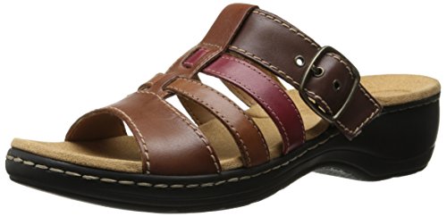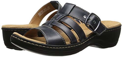 A strappy clog style mule, the Clarks Hayla Cavern offers a casual, comfortable addition to your summer sandal collection. A rocker bottom and cushioned footbed encourage a comfortable stride, while an adjustable buckle and woven vamp detail add a decorative element to this sophisticated style.Feature