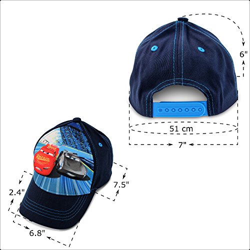 -. Binding : Apparel -. Brand : Disney -. Department : boys -. Feature : Disney Cars baseball cap / Cotton twill construction / Contrast stitching / Adjustable snapback design / Raised character graphic -. Label : Disney -. Manufacturer : Disney -. MPN : DCS72299ST -. PartNumber : DCS72299ST -. ProductGroup : Apparel -. ProductTypeName : HAT -. Publisher : Disney -. Studio : Disney -. Title : Disney Cars Boys' Baseball Cap