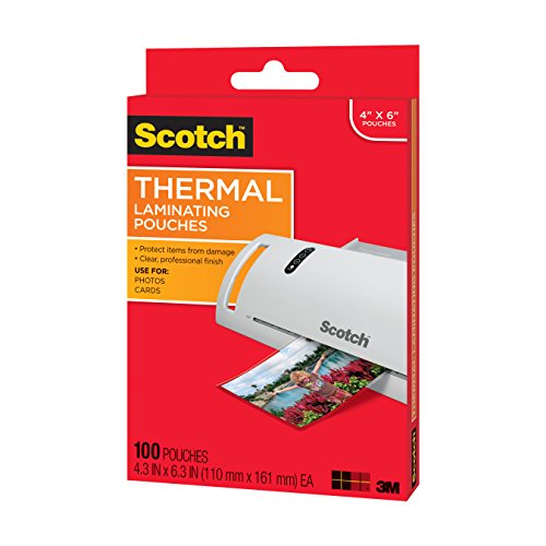 Scotch Thermal Laminating Pouches protect documents you handle frequently. These 5-mil thick thermal laminating pouches are for use with thermal laminators. Pouches are clear to let important information show through. 4-Inches x 6-Inches size.Feature