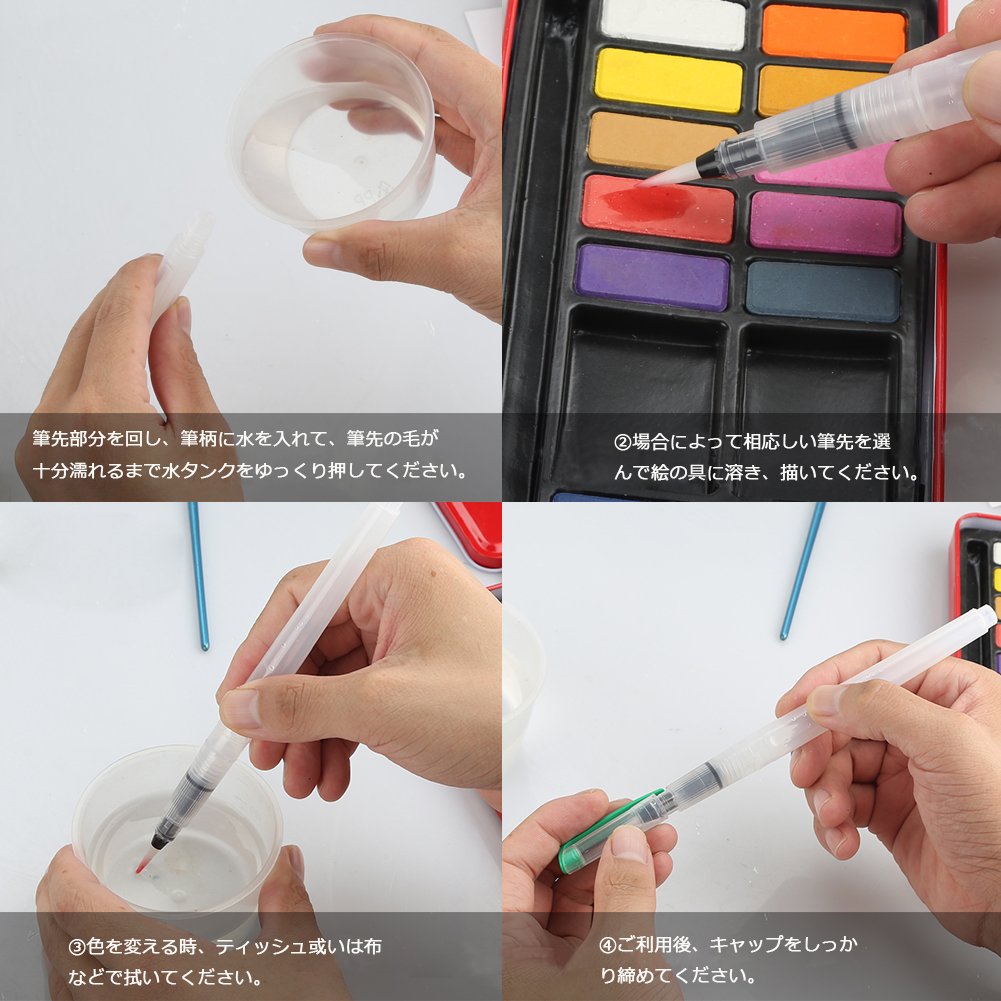 Water pen pen has gradation, bleeding and blurring Aqueous dye markers and facial colors are very compatible, so you can paint paintings, stamp art, scrapbooking, manga, illustrations etc.