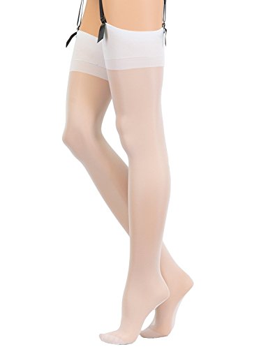 -. Feature : PLAIN THIGH HIGH SHEERS: A timeless classic designed for a suspender, girdle or garter belt S M L / PLAIN TOPS: The extra deep wide plain opaque tops with a small sheer section 10.7cm un-stretched / EXCELLENT QUALITY: Durable and resistant These sheer thigh highs for women are made for everyday use / 88% nylon/12% spandex, Made in Italy / Hand wash, No bleach, No iron, No tumble dry