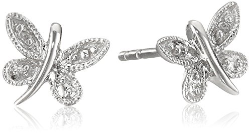 These dainty dragonfly earrings shine in 10 karat white gold with genuine diamond accents (.01 cttw). The gracefully curved dragonfly bodies are framed by textured wings containing polished beads and diamond accents. A charming gift idea--for someone special or for yourself--these earrings are featured on posts with friction back closures.Feature