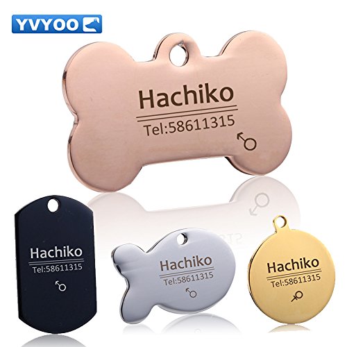 Product Description Style: PET ID TAGS Material: Stainless steel Shape: Bone Square Circular Feature: Personalized engraving Color: Stainless steel color Size:M L 0