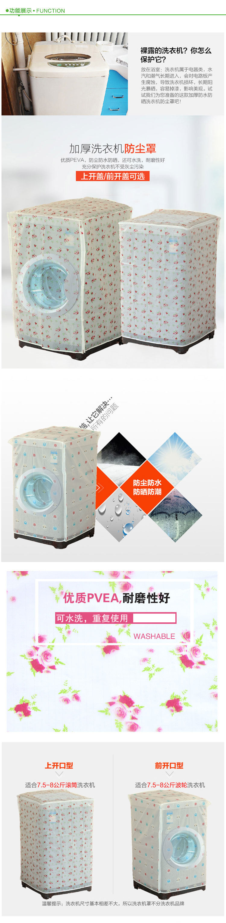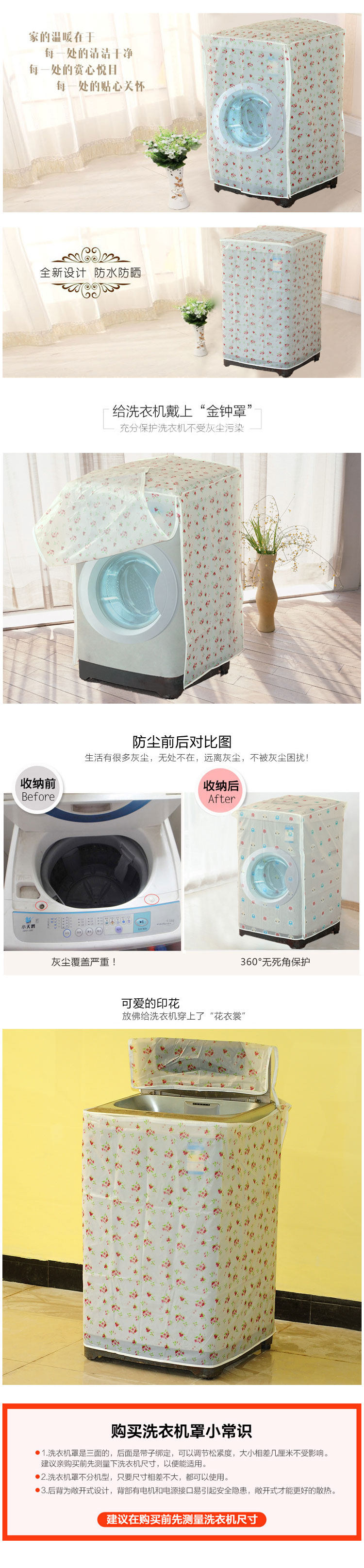 Summary: thickening waterproof sunscreen washing machine dust cover, to the washing machine to wear "Admiralty", dust and waterproof sunscreen, wear resistance, and fully protect the washing machine from dust pollution