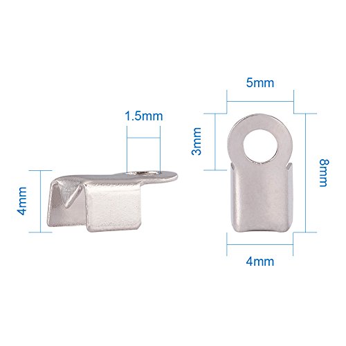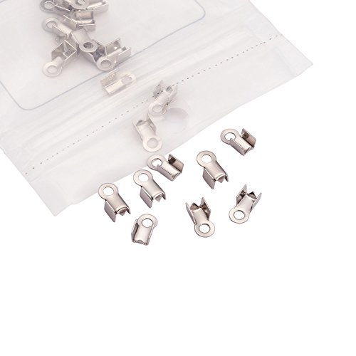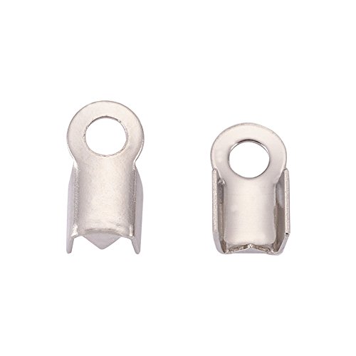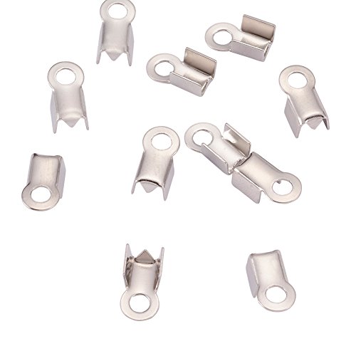 Pandahall 50-piece 304 Stainless Steel Fold Over Crimp Cord Ends Fold Over Cord Ends for Leather