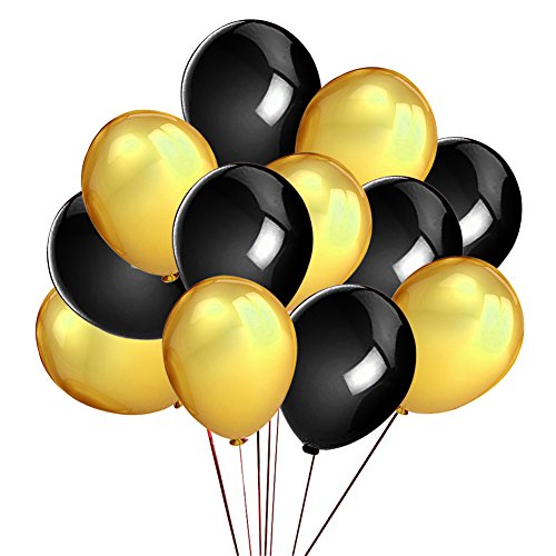 - Latex Balloon will come in 2 colors, 10 Gold and 10 Black, 12 Inchs Latex Balloons Helium Quality can be filled with AIR or Helium.Weight; 3.2g the highest standard