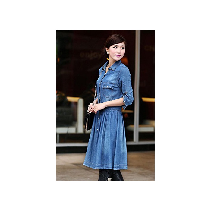 【DEEPEYES】 덩거리(데님의 한가지) 긴 소매 롤 업 박수 데님 원피스 (M사이즈)