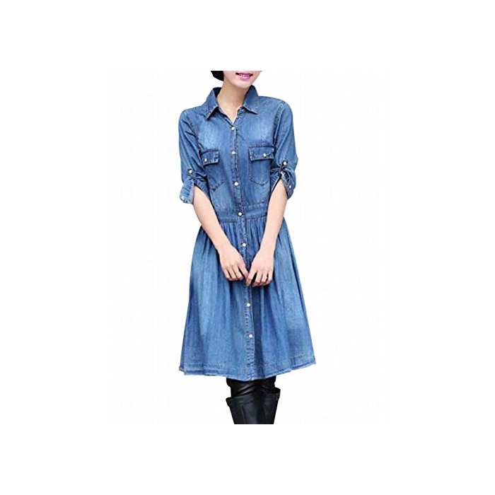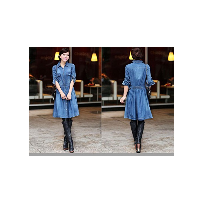 원본상품명: (ディプアイズ) DEEPEYES ダンガリ デニム ワンピス 長袖 ロル アップ 薄手