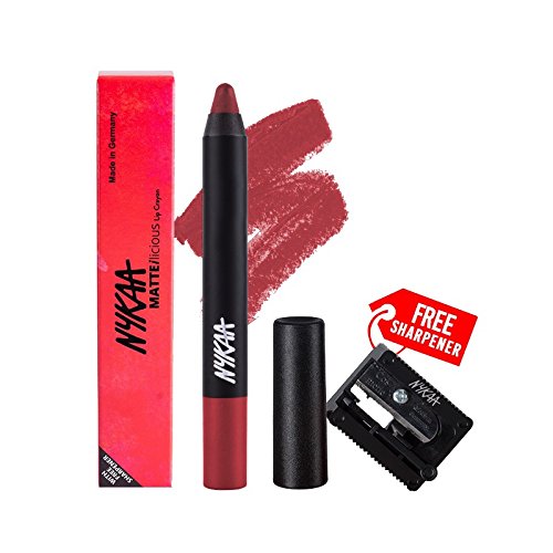 Nykaa MATTE-ilicious Lip Crayon - Kiss N Tell (2.8gm) shade No 06 With Prove Your Point Cosmetic Sharpener