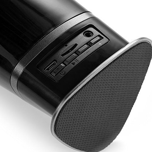 -. Feature : Built-in four color(White,Blue,Red,Green) RGB LED lights, 360-degree LED pulsating music. Four kinds of music pulsating LED visual display mode and beautiful LED lighting function / Built-in high-quality 3W voice coil speaker, bright treble, alto mellow and deep bass, bringing you the perfect music to enjoy / 10m bluetooth distance, support TF card(MP3,WMA,APE,FLAL format etc)/AUX-in/FM radio / Built in rechargeable lithium battery, lightweight better for traveling, boating, camping, climbing etc. / Support iPhone, iPad, Samsung, HTC, laptops and other devices with Bluetooth function easy to pair and play music