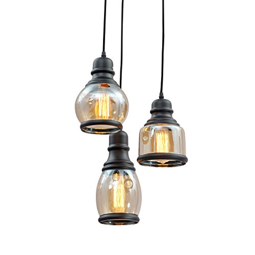 Unitary Brand Antique Black Shade Glass Jar Pendant Light Max 120W With 3 Lights Painted Finish