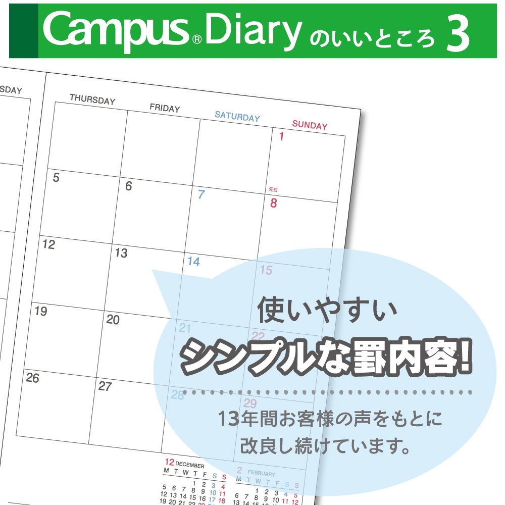 ■■ Standard campus diary (monthly type) that can be used easily as a sense of note ■■