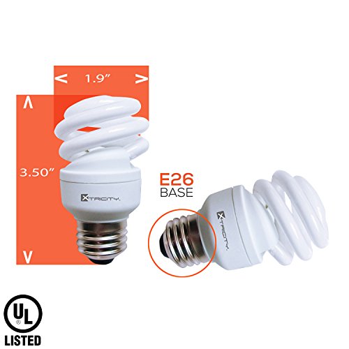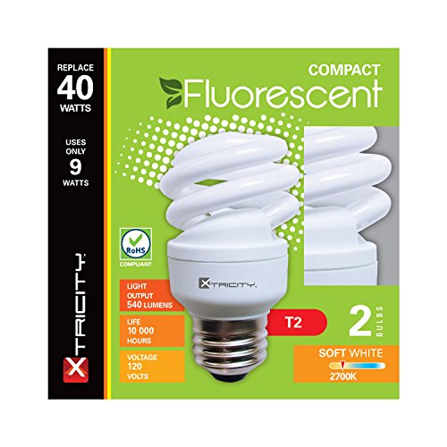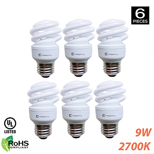 Xtricity Compact Fluorescent T2 Spiral CFL Energy Saver Light Bulb, 9W (40W Equivalent) 120 Volt, 540 Lumens, 2700K Soft White, E26 Medium Base, RoHS Compliant & UL Listed, (Pack of 6)