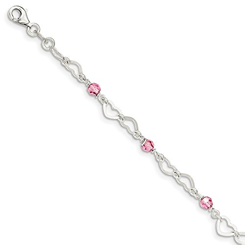-. Title : 925 Sterling Silver Polished Hearts and Beads with 1in. Ext. Dangle Anklet Bracelet 6-9" (9in)