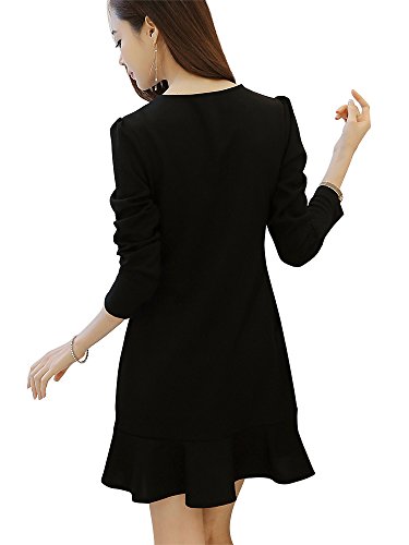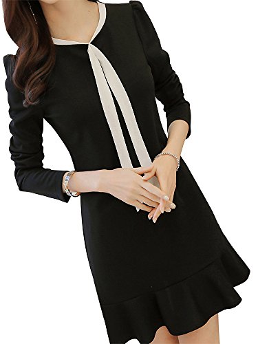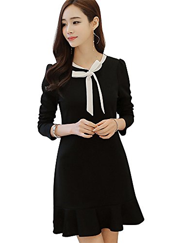 -. Title : Les Hiboux(レ・イブー) ワンピース 上品 ブラック フォーマル 長袖 Aライン フレア ドレス レディース