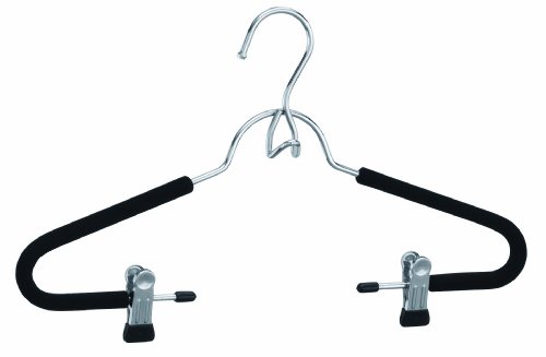 -. Feature : Perfect for Blouses or Suits / Chrome with Black Foam Trim / 2 sturdy moveable clips for hanging pants or skirts