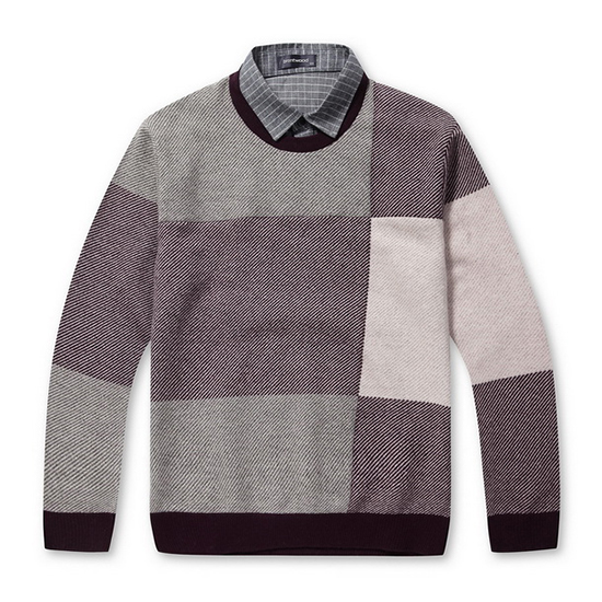 - 컬러 블럭 디자인에 사선 조직을 적용한 남성 니트.