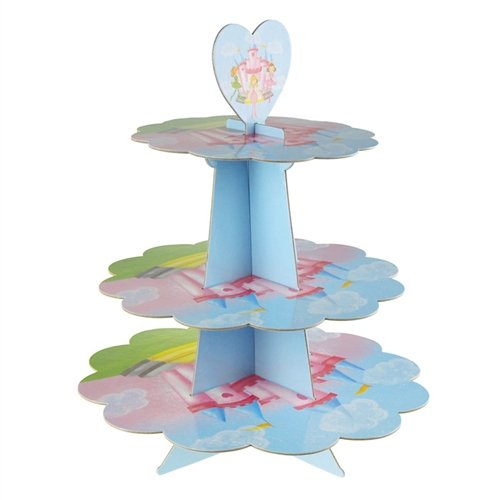 Homeford FMC000PC252E Princess Cardboard 3-Tier Cupcake Stand, 10", Blue/Pink
