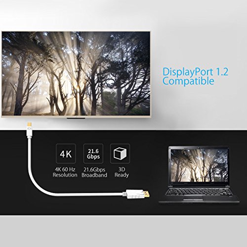 AIFFECT Mini DisplayPort to DisplayPort Cable 4K 6Ft - White