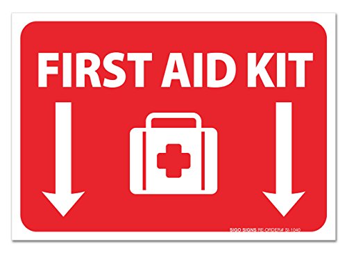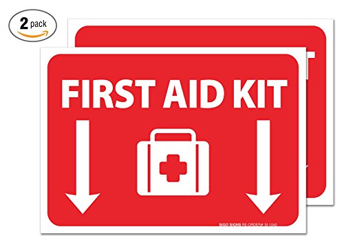 (2 Pack) First Aid Kit Sign - Self Adhesive 7 X 10" 4 Mil Vinyl Decal - Indoor & Outdoor Use - UV Protected & Waterproof - Sleek