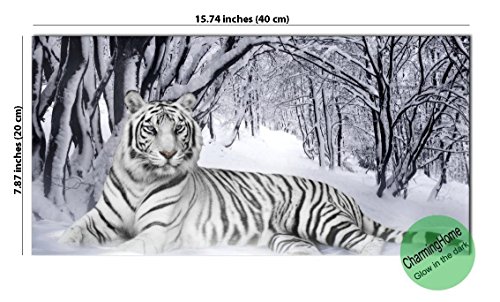 -. Binding : Kitchen -. Brand : CharmingHome -. Label : CharmingHome -. Manufacturer : CharmingHome -. ProductGroup : Home -. ProductTypeName : HOME -. Publisher : CharmingHome -. Studio : CharmingHome -. Title : Wall Decoration for Living Room Wall - Painting with Animal Theme in Living Room Decor - Glow in the Dark White Tiger Canvas Painting - by CharmingHome