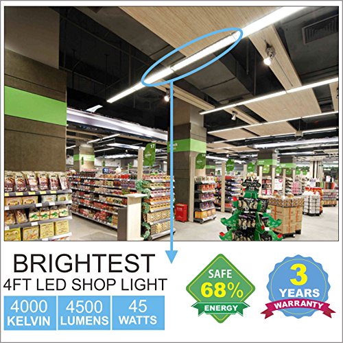 (Pack of 2) Barrina 4ft 45W Watt 4000K Neutral White 4500lm Extendable Utility Shop Light for Garage Basement Under Ceiling Lighting wiht Switch Plug and Play