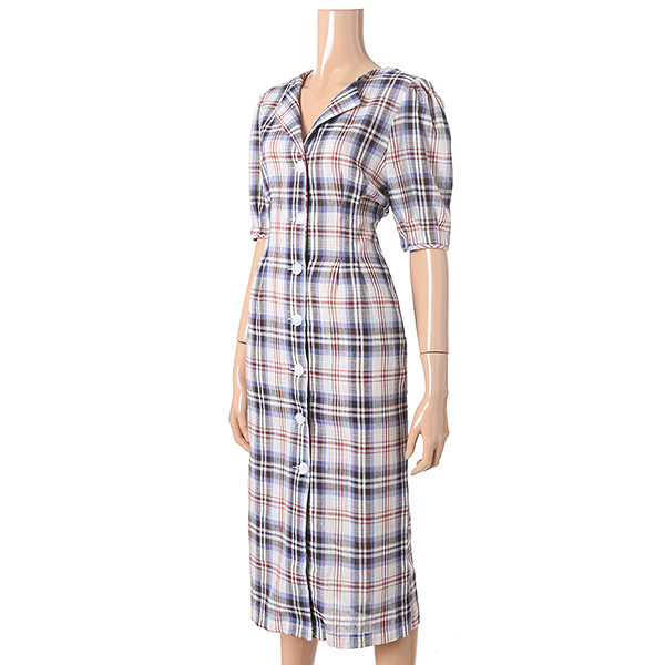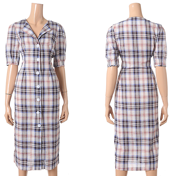 깔끔한 컬러에 체크패턴으로 포인트를 준 V넥 원피스 입니다.