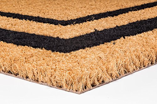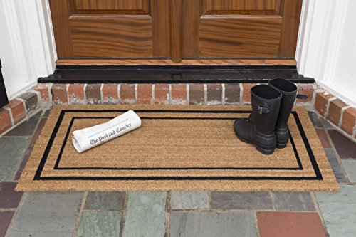 Tired of door mats that are too small for your door? The 24" x 48" 'Classic Border' by DeCoir entrance mats is designed specifically for small double doors & medium-sized entryways. DeCoir mats are manufactured in the USA using imported natural coir fibers & feature richly textured designs that are fade & weather resistant. Thousands of coarse, coir bristles remove dirt & our heavy-duty backing traps debris & protects the surface of your entrance way. Mats should be placed in a sheltered, weather-protected area such as under an overhang, awning or portico. Because we use natural coir fibers to make DeCoir entrance mats, there may be some initial shedding over the first month of use. DeCoir entrance mats are manufactured by U.S. Cocoa mat, LLC in St. George, SC. Founded in 1889, we are America's oldest doormat company.Feature
