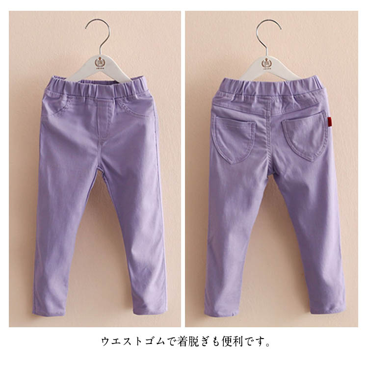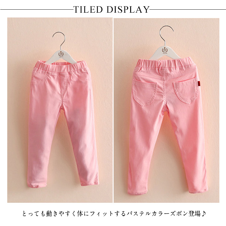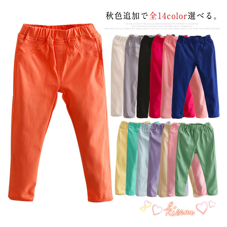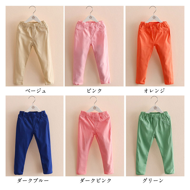 | 秋色追加で全14color選べる。とっても動きやすく体にフィットするパステルカラーズボン登場♪柔らかいやや伸縮性のある素材なので、活発に動いて遊んでも動きやすい。ウエストゴムで着脱ぎも便利です。年中使えるパンツは、お出かけに部屋着にと大活躍間違いなし! 友達や姉妹でお揃いにしたり、コーディネートで数カラーまとめ買い!持っているととっても便利ですよ♪ | |