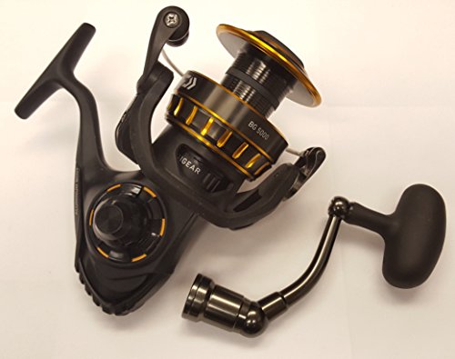The next generation of the popular BG Series spinning reel has gotten leaner and meaner. Super duty, oversized gears put the competition in the rear view mirror. Hardbodyz aluminum body and side cover provides strength in the form of corrosion and scratch resistance. Lightweight air rotor weighs 15 percent less than ordinary rotor designs. Its unique shape reduces unnecessary weight while distributing stress more evenly throughout the rotor for maximum strength. Dynamic cut aluminum ABS spool maximized core diameter and reversed taper mean 100 percent useable line. ABS causes less casting friction for longer and easier casting. Features a smooth 6 + 1 bearing system. The waterproof carbon tad drag system allows for smooth no-stick performance when the "big one" takes a run. Braid line ready spool. Daiwa screw-in-handle design provides zero movement or play between the main gear and handle arm. This lack of movement offers the angler both confidence and control when rotating the handle.Feature
