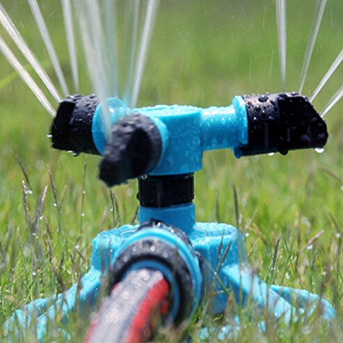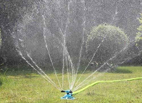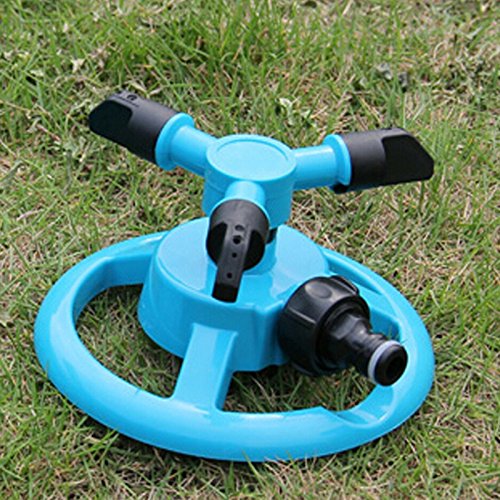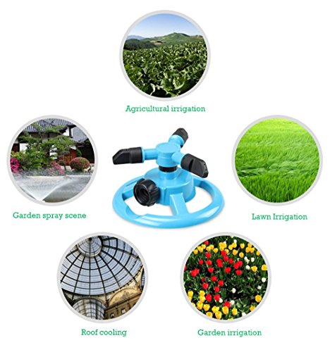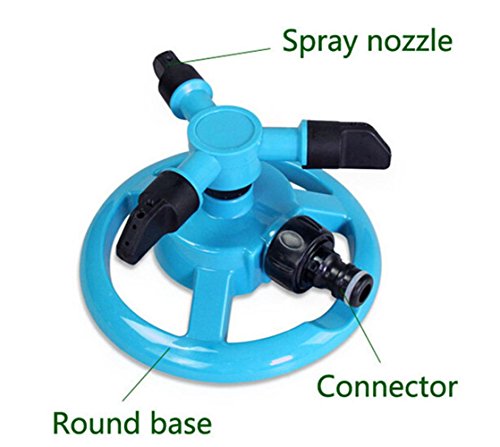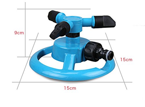 -. Feature : Round three-arm rotating sP.R.Inkler base, 360-degree rotation. / Spray distance, spray 8-10 meters in diameter. / Spray evenly, water-saving design, easy and convenient to use, gardening is a good helper. / Used for lawn, planting trees, flowerbeds, garden / Size: 15cm x 15cm x 9cm / 6" x 6" x 3.5"