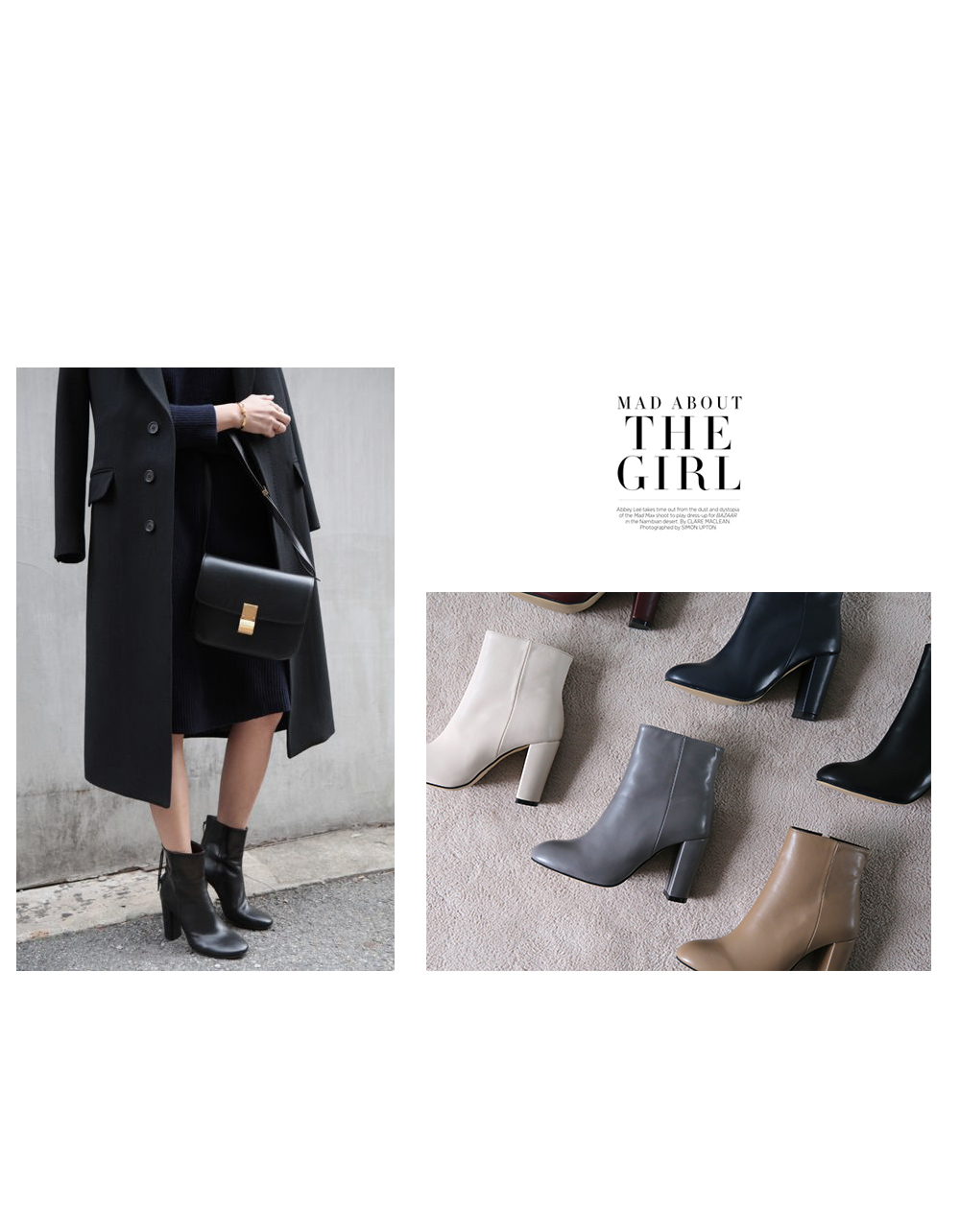 Simple daily ankle boots 둥그스름하게 잡힌 각이 깔끔해서 매력적인 앵클부츠입니다 별다른 포인트없이 데일리하게 신기좋아요 FW시즌과 걸맞게 톤다운된 6가지 컬러로 팬츠나 스커트에 편안하게 신을 수 있어요