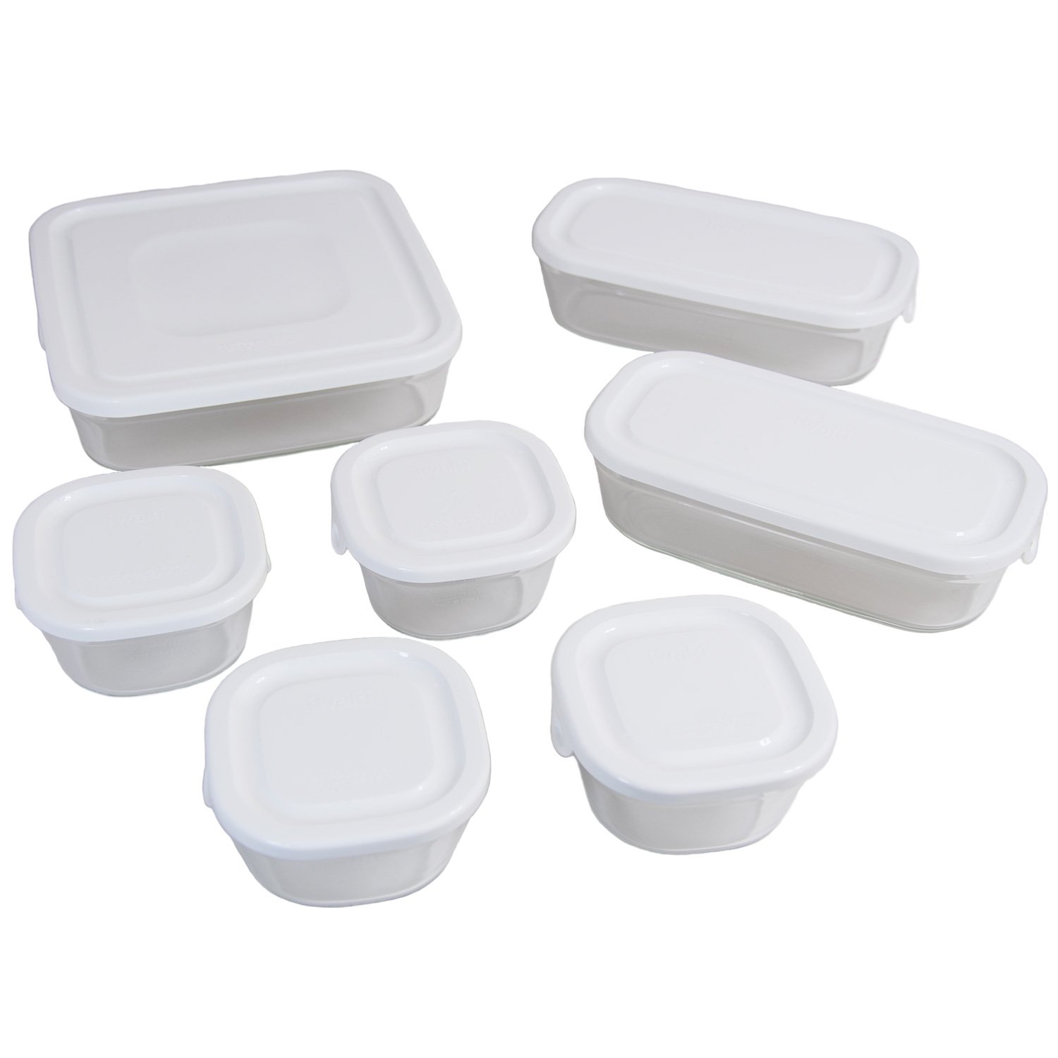 サイズ:大/約18.5×18.5×5.5cm、長角/約18.6×9.3×5.5cm、小分け/約9.2×9.3×5.4cm 素材:本体/耐熱ガラス(耐熱温度差120℃)、フタ/ポリプロピレン(耐熱温度140℃) 生産国:タイまたは中国 セット内容:小分けパック×4、長角パック×2、大パック×1 電子レンジ、オーブン、食器洗い洗浄機使用可能(フタはオーブン不可)