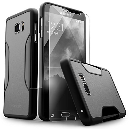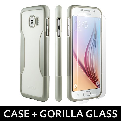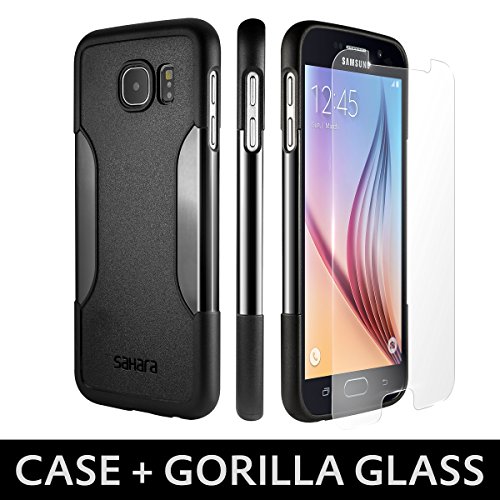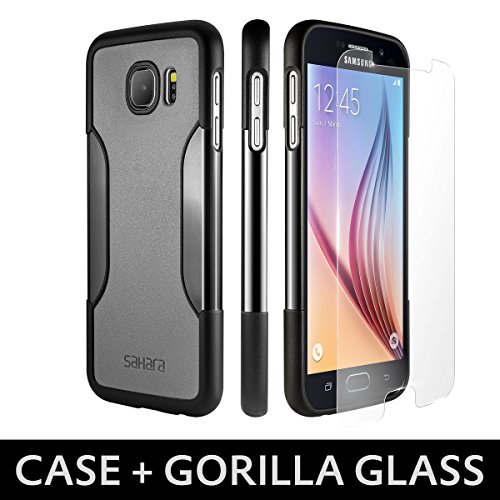 Galaxy S6 Case, Gray *Bonus Tempered Glass* Screen Protector [Protective & Slim] Lightweight, PC Back + TPU Bumper, Pro Camera Hood = Stunning Photos, Samsung Galaxy S6 Case - Black Gray SaharaCase