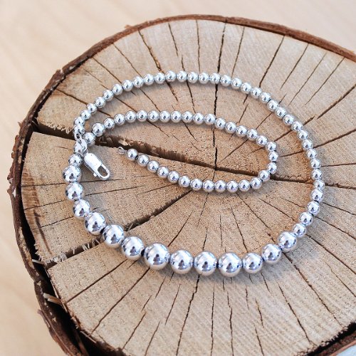 - Title : Sterling Silver 925 Graduated 5-10mm Beads Necklace 18", ITALY made