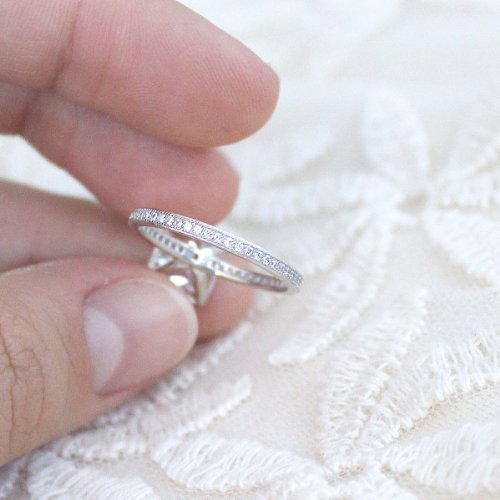 - Title : Sterling Silver Micro Pave CZ Cubic Zirconia Eternity Band with Princess cut Engagement Ring