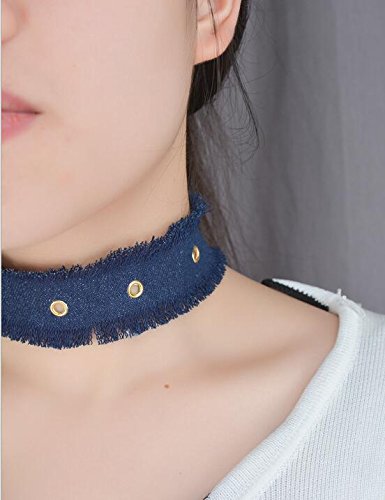 Venusvi Fashion Fabric,Blue Velvet Denim Choker Necklace for Girls and Women