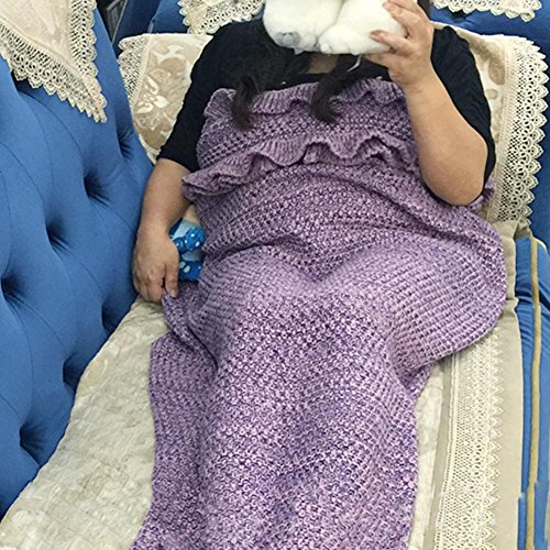 Feature : Size: 71"*35.5"( 180 x 90 cm ),1.8LB / Made of soft and cozy Acrylic Fibers, Eco-friendly and Skin-friendly perfect for kids or adults wrap. / Crochet by hand, more exquisite and elegant, ideal gifts for girls and women, give them a warm and sweet winter. / The creative cuddly mermaid tails blanket with bright color and beautiful cable knitted pattern to complement your living room or bedroom decor. / Easy inside and out, can be used on the couch, for camping, sleepovers, in bed, in the car - anywhere!