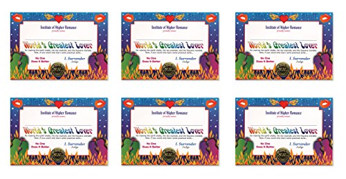 Beistle CG056 6-Piece World's Greatest Lover Certificate, 5-Inch by 7-Inch