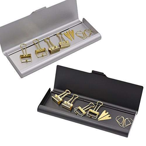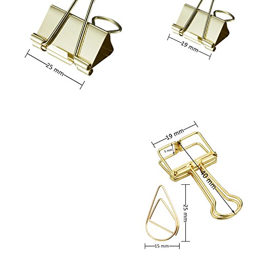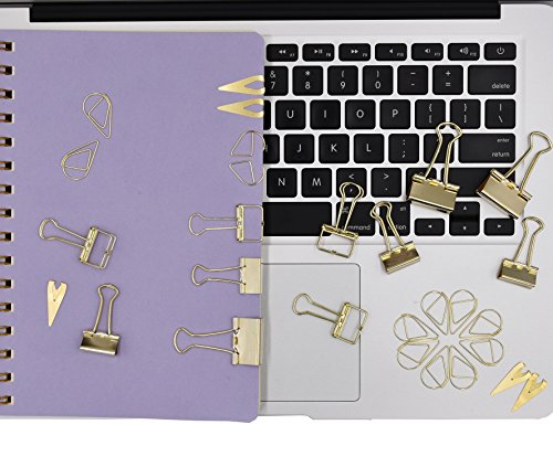 12 Pcs Binder Clips and 2 Pcs Bookmarker and 50 Pcs Paper Clips ,Assorted Size Gold Clips With Storage Case
