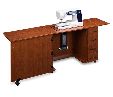 -. Brand : Sylvia® -. EAN : 0659362589878 -. Feature : Commercial grade locking casters / Dowel construction for tight, strong joints. / Hinges are flush with the top surface, meaning no snags on fabrics or quilts. / Pre-Drilled for optional hinged drop leaf at back of cabinet. Quilters love the extra space. / Centered sewing surface with sewer positioned directly in front of needle, for sewer comfort. -. PackageQuantity : 1 -. ProductGroup : Art and Craft Supply -. ProductTypeName : ART_AND_CRAFT_SUPPLY -. Title : Sylvia Design Model 920 Sewing Cabinet -. UPC : 659362589878