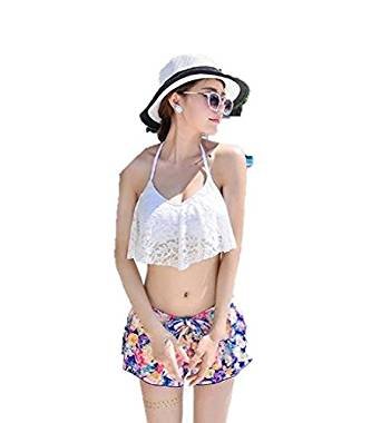 -. Feature : 水着3点セット セクシーで人気 小花柄×レースフレア フリルで体型カバー レディース / ショーパン付きだから気になるお腹周りやヒップもカバー