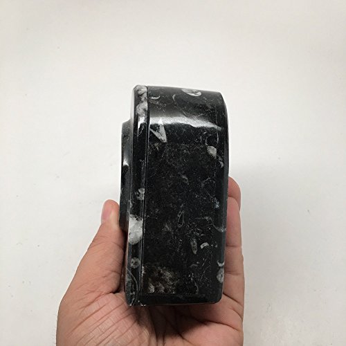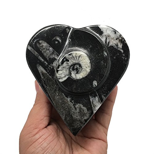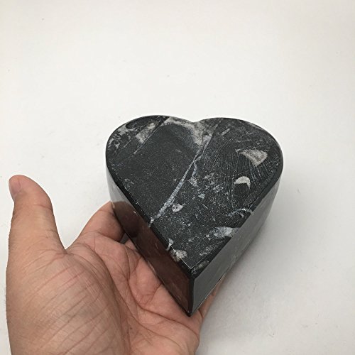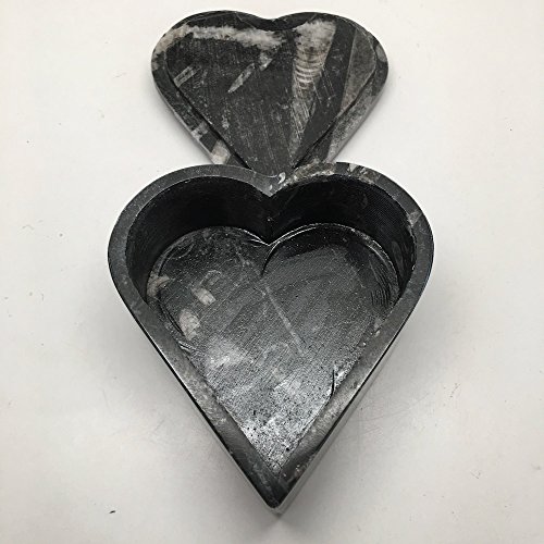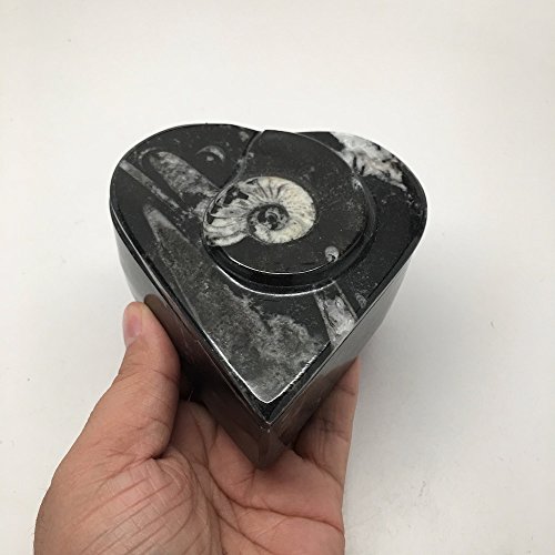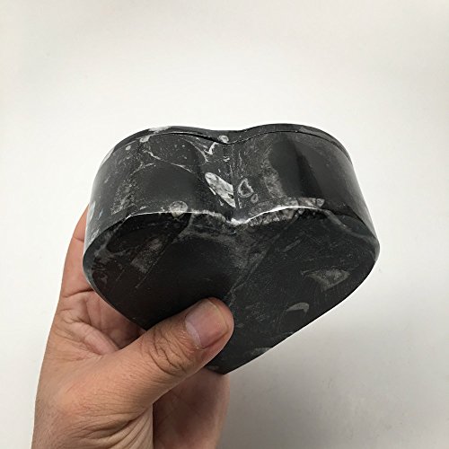 408.1 Grams Heart Shape Black Fossil Orthoceras Ammonite Jewelry Box From Morocco, MF476