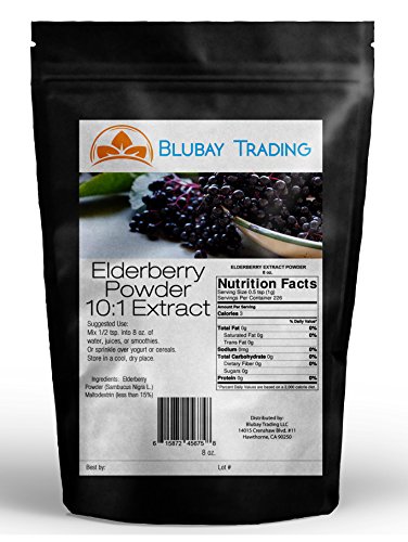 -. Binding : Health and Beauty -. Brand : Go Nutra -. EAN : 0615872456758 -. Feature : Grown in Mountains of Chile / Rich in Vitamin C and Anthocyanin / Non-Gmo / Rich in flavonoids including Quercetin / 10:1 Ratio Juice Powder - Takes 10 lbs. berries to make 1 lb. of powder! -. IsAdultProduct : 0 -. Label : Go Nutra -. Manufacturer : Go Nutra -. PackageQuantity : 1 -. ProductGroup : Health and Beauty -. ProductTypeName : HEALTH_PERSONAL_CARE -. Publisher : Go Nutra -. Size : 8 oz -. Studio : Go Nutra -. Title : Elderberry Juice Powder Sambuca Nigra 10:1 Non-Gmo from Chile 8oz -. UPC : 615872456758