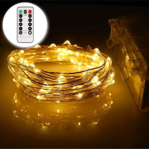 -. Feature : ★Superb Decorating & Crafting Tools:You can get brilliant fairy lights,this string light is with 33FT moldable copper wire and 100 glowing micro Leds!1 remotes to control the lights wirelessly.To use them to decorate your Halloween,Christmas,wedding, unique DIY dinner party centerpiece,making twinkling bonsai/plants.Create handicrafts that belong to you. / ★Versatile Remote:when you take the remote,Switch freely--8 Flashing Modes,12 Brightness Level adjustable and unimaginable Timer Function--set them in timer to auto on and off each day,such as 8 hours on and 16 hours off.ALL IS IN YOUR CONTROL! / ★Creative mold:High quality bendable copper wire into any shape you can think of. Create and Design your perfect,shinning,unique life space!But you need note that the string light could cannot be extended or linked together. / ★Excellent String Lights Materials:This copper wire is waterproof material with IP65 grade and three kinds Certification authority include ROHS,CE,FCC.Nothing you need to worry when you play outdoor! / ★High Quality Battery Case: Waterproof battery pack and 3 AA batteries(without include)needed; the fixed switch on the battery pack,you can switch from flash to twinkle to slow ,fade to steady on ect,makes it available to use with or without the remote.