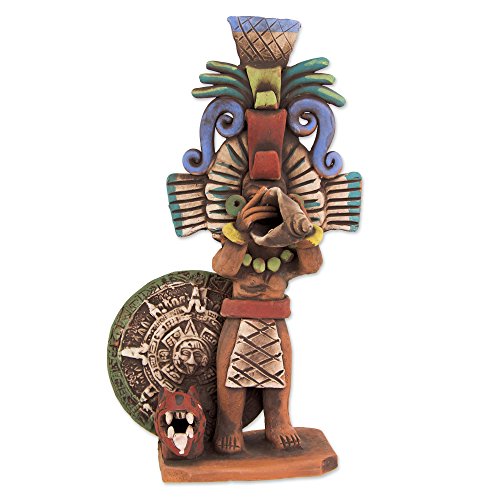 NOVICA Large Multicolor Archaeological Ceramic Sculpture, 12.25" Tall 'Priest Of The Aztecs'