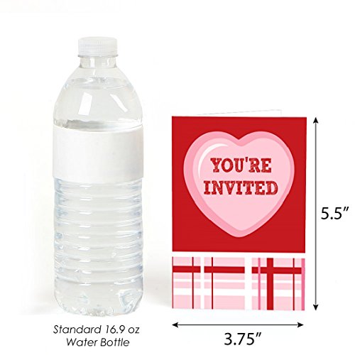 Conversation Hearts invitations SIZE 5.5 inches by 3.75 inches, folded. The included envelopes measure 5.75 inches by 3.75 inches.