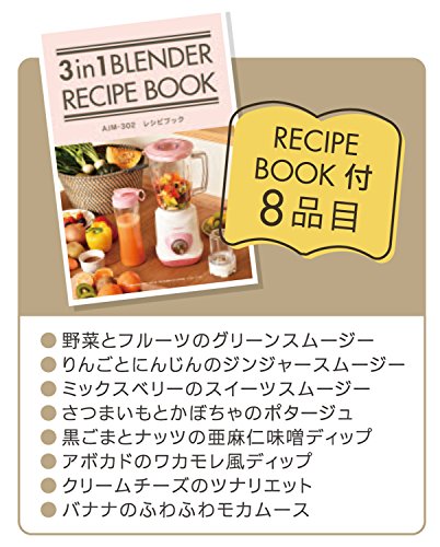 《아핏쿠스》 APIX 3in1 블랜더 「부순다+혼합한다+운반한다」 레시피(요리처리법) 북 부착 AJM-302