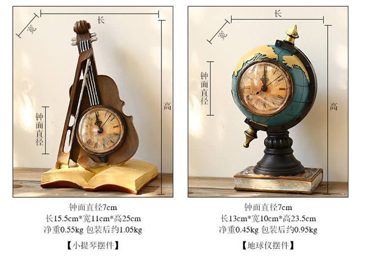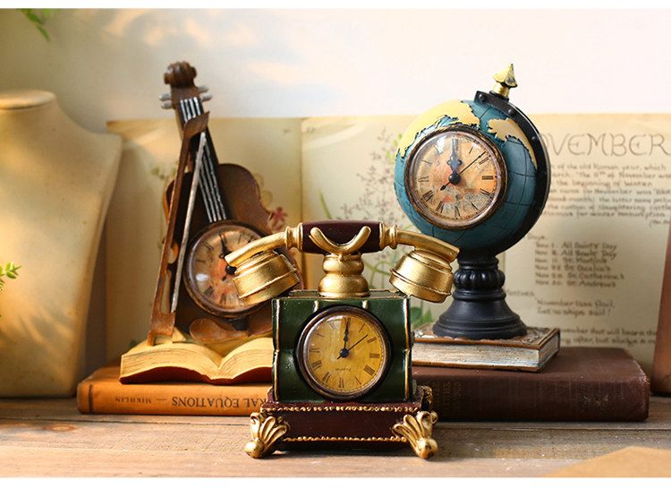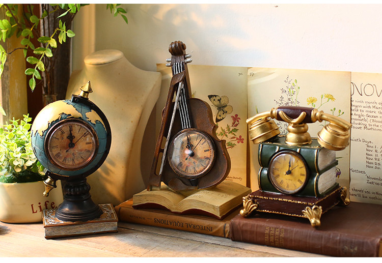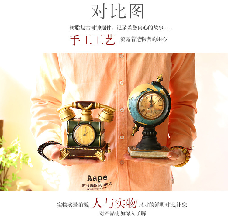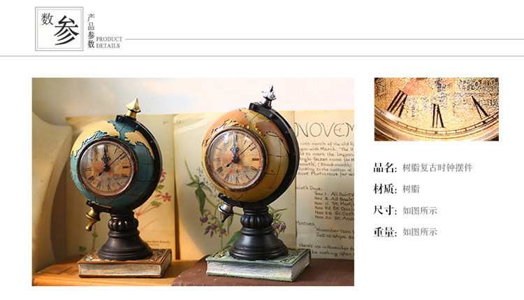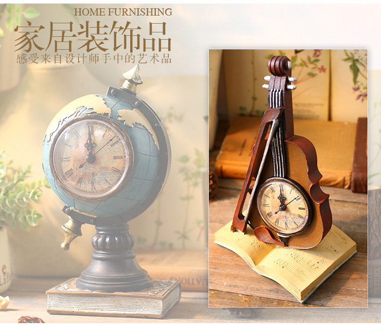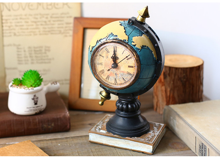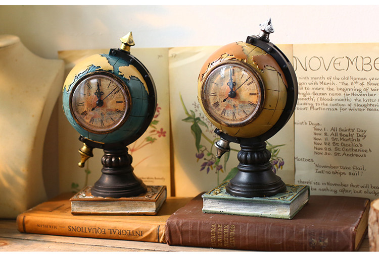 󰄬创意台式钟表座钟客厅卧室床头柜时钟地球仪坐钟摆件桌面软装饰品